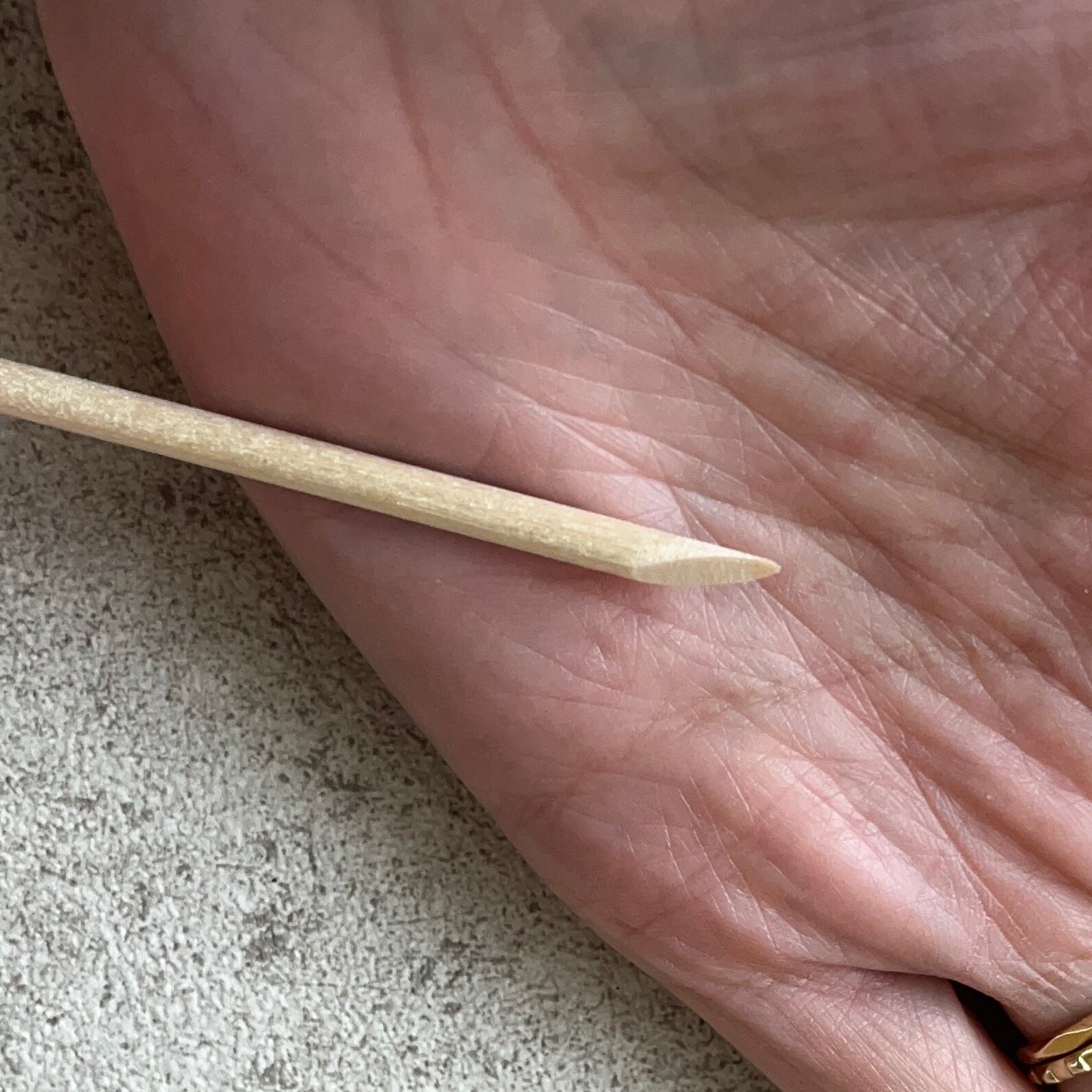 根本にウッドスティックが中々入らない場合は、チップの指先の方を優しく少し押し下げると根本が浮くかと思います。